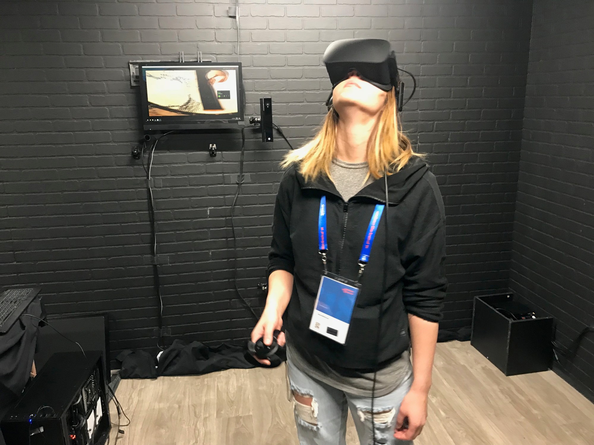 Cameras around the room captured my movements and appearance in fantastic detail in real time. While not as stunningly clear as IRL*, I could still look down, see the details of my clothing and the movements of my body.