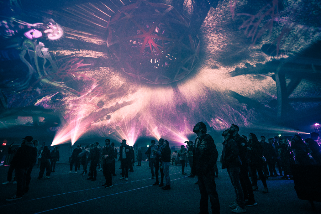 At the current exhibition, the entire venue is filled with work by digital painter Android Jones in a variety of formats. Events are held every weekend, with many concerts and experiences planned for 2019.