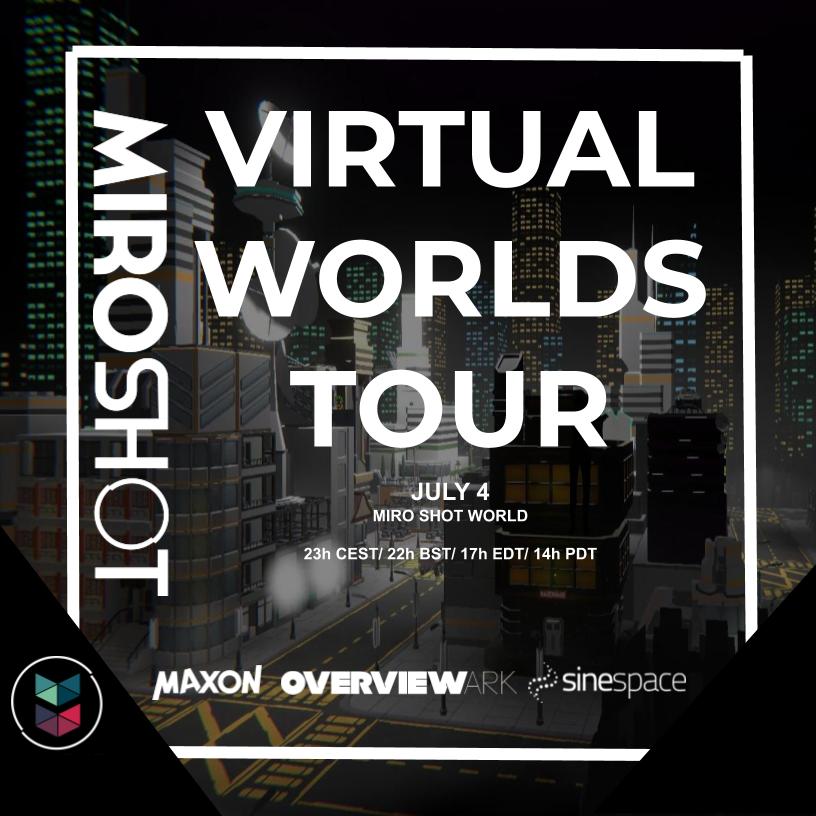 Alternative/ electronic band Miro Shot, in collaboration with immersive startup Overview Ark, will perform a concert in their custom-made virtual world in Sinespace this Saturday, July 4th, starting at 2pm PT/5pm ET.