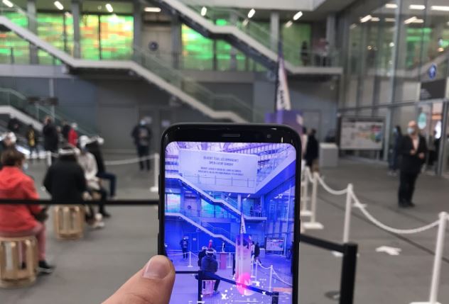 So here I am, standing in the Forum des Images, looking through my mobile device with MOA. I see a shopping mall with still and digital billboards, flashing lights, ads, shoppers and a host of goods, all combined with minimal AR overlays. Add in some neon, max out reflection, glare, exposure, put a few haggard-looking mercenaries on the street and boy are we ever living in Cyberpunk 2077 with a little less violence and public indecency.
